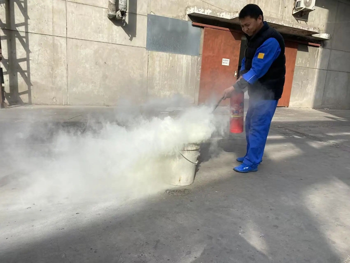 “提、拔、握、壓——對(duì)準(zhǔn)火源根部掃射!”在演練現(xiàn)場(chǎng),安全員手持滅火器,結(jié)合冬季干燥、火情易蔓延的特點(diǎn),向員工講解操作要領(lǐng),強(qiáng)調(diào)冬季滅火器維護(hù)重點(diǎn)。