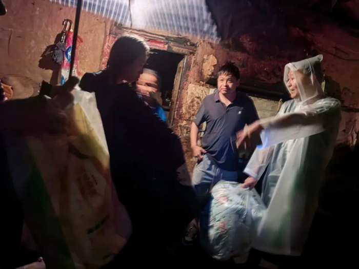 汛情就是命令。面對突如其來的洪水,本就日夜堅守在村委會的李東,與村委委員一起連夜趟著洪水,去多戶村民家中查看水位和房屋漏雨情況,在冒雨拉網式檢查中,李東和村委委員先后將2戶有安全隱患房屋內的6名村民,連夜轉移至村委會臨時安置點。當大家要喘口氣歇歇腳兒時,28日凌晨3時許得到消息,位于村口的小商店出現險情,60多歲的老兩口被困店內。接到消息,李東和村委委員緊急出發。由于洪水流速非常快,他們小心翼翼地扶著墻體前行。在到達商店后,此時洪水已經淹沒房屋門檻灌入店內。面對緊急情況,李東和村委會干部們全力解救被困老人。李東在前面小心探路,另外兩人護住老人,在大雨中最終將兩位老人撤離到安全地帶。