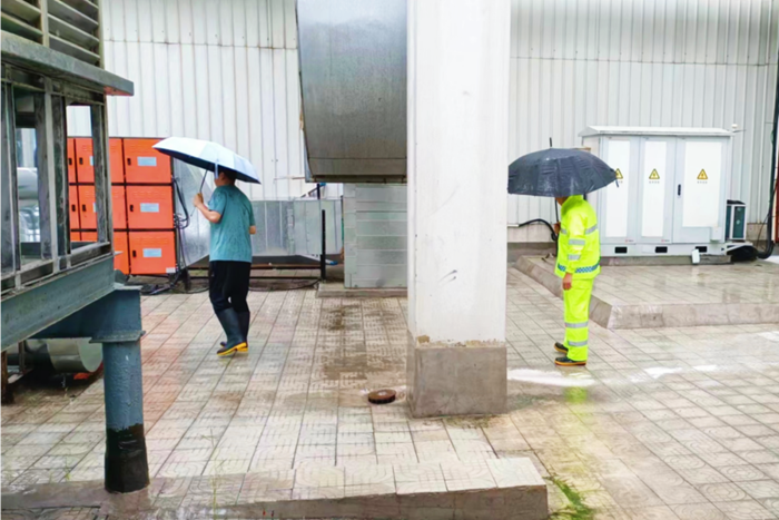 7月30日,屬地普降大雨,廠區(qū)出現(xiàn)大量積水,為防止再次降雨造成水位升高,雨水進入庫房等重點區(qū)域,公司領導帶領安全干部隊伍趕赴一線,親力親為,對廠區(qū)排水口、井箅子等積存污泥進行及時清除,加裝水泵以加快廠區(qū)雨水排放,做到雨停路凈。