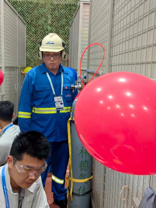 在這期間,為保障產品運輸安全高效,北普公司提前對全部保障車輛進行維修保養;針對工作現場空間有限、人員較多的實際情況,公司專門定制了鋼瓶推車,消除了鋼瓶因手動挪動易發生碰撞、倒伏的隱患。此外,為確保充裝過程的絕對安全,公司還明確要求,鋼瓶到位后,必須用綁帶與氣球籠體固定,以免對現場操作人員造成傷害。可以說,在演練和正式活動中,北普公司始終將安全作為頭等大事,對每一個細節都實施清單化管理,最終確保了氣球充裝保障任務的全過程安全。